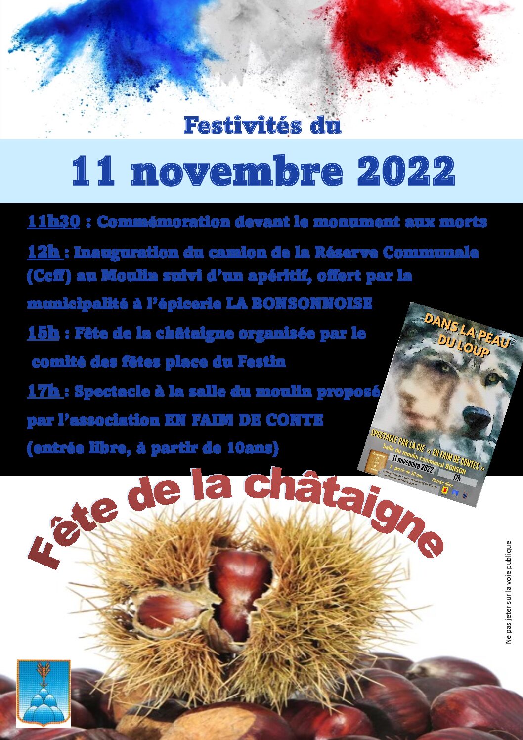 15h : fête de la châtaigne organisée par le comité des fêtes place du Festin