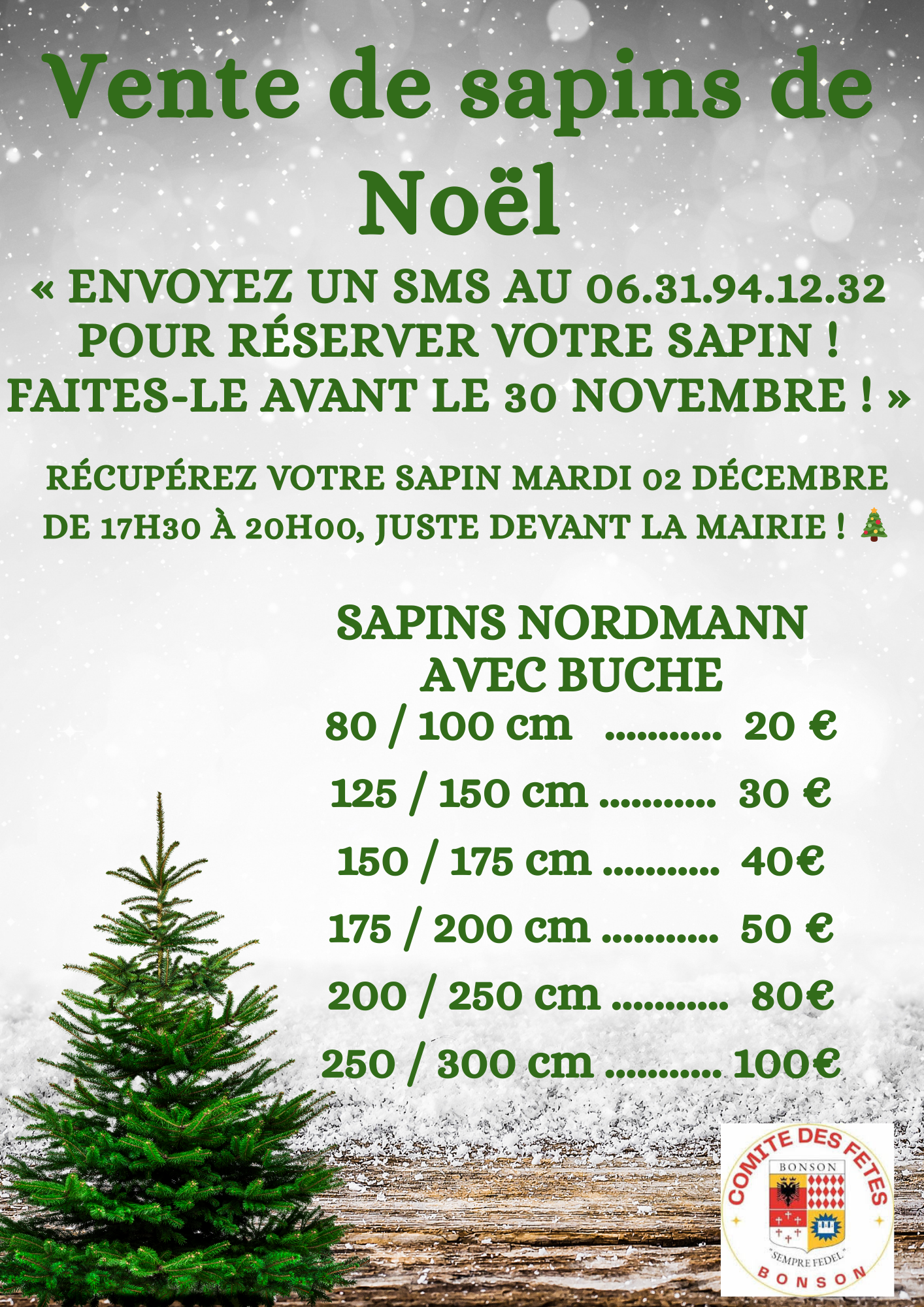 Vente de sapins de Noël par le comité des fêtes