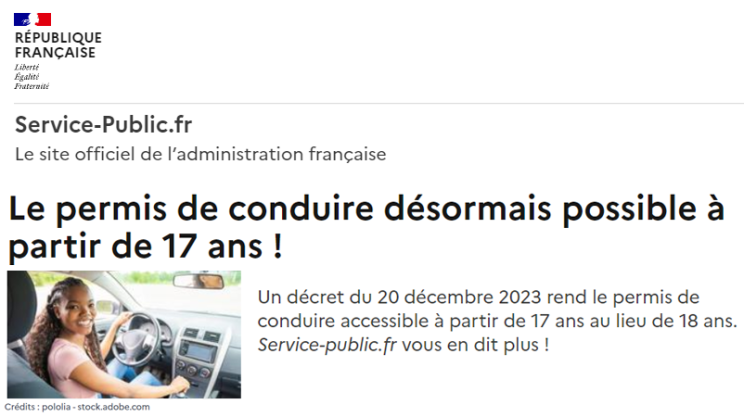 À partir de janvier 2024, il sera possible de passer l’examen du permis de conduire dès l’âge de 17 ans en France.